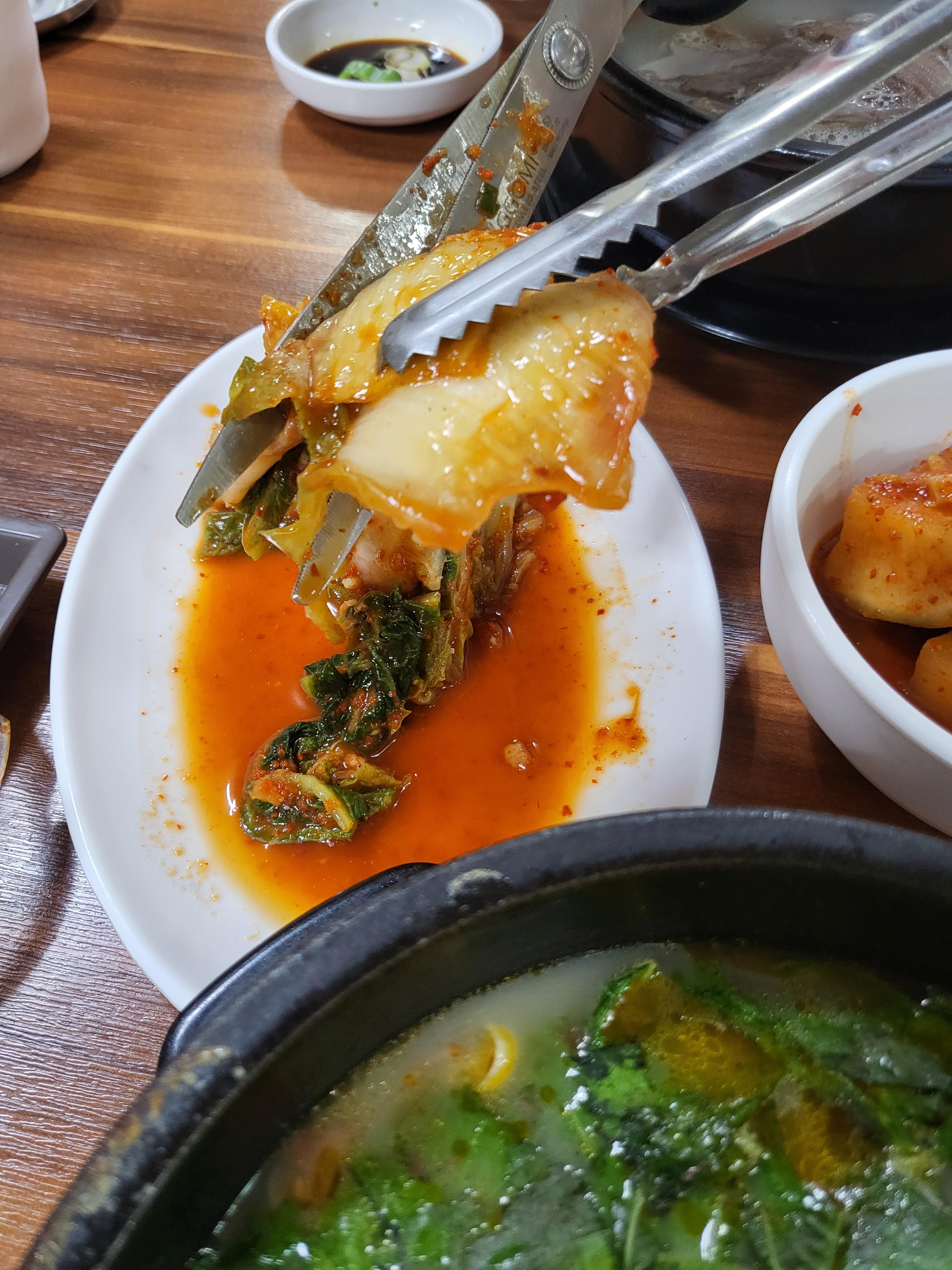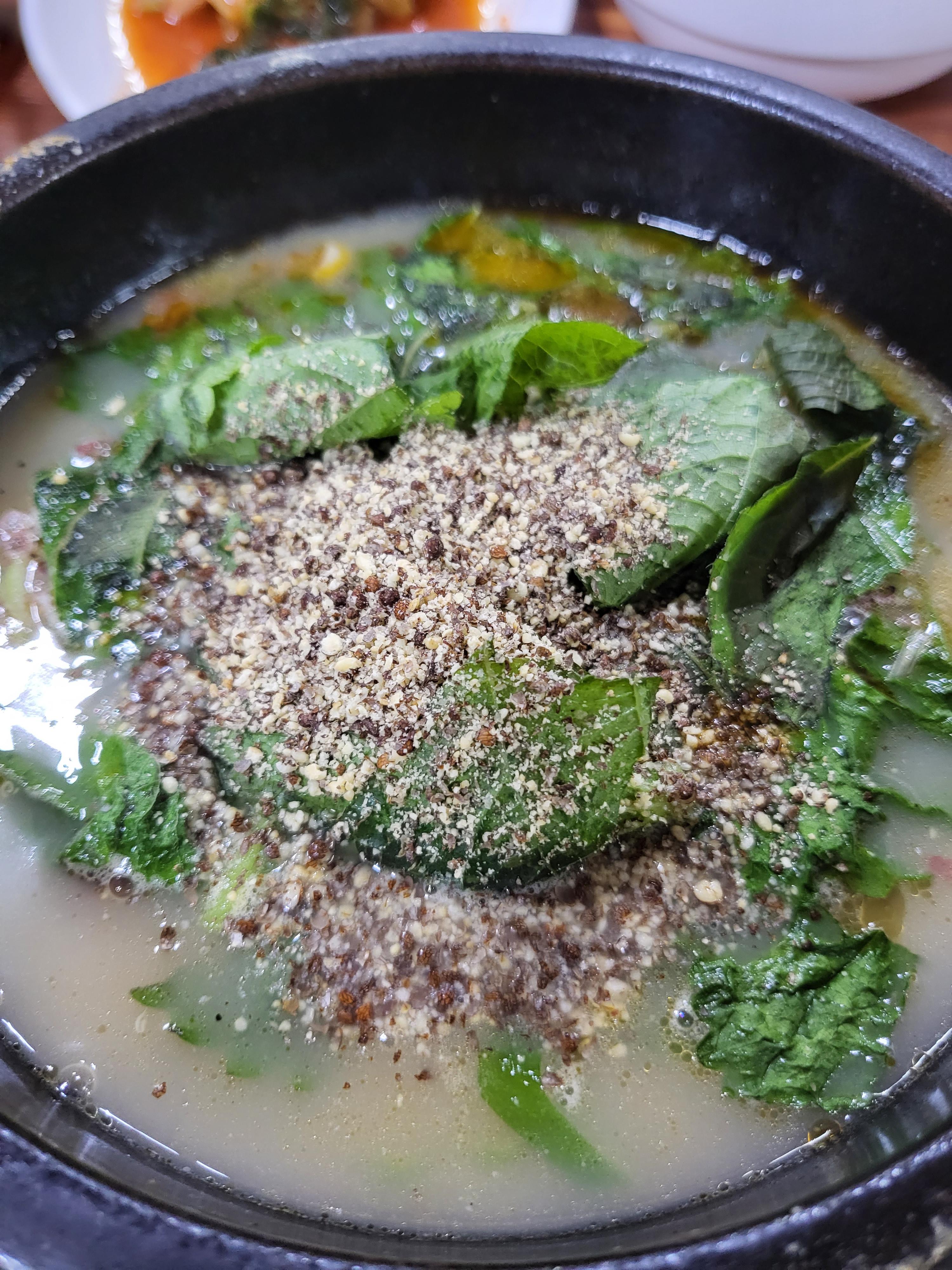 깻잎이 잔뜩 올라가 있고 비쥬얼도 좋았으나 뭔가 약간 느끼하고 개인적으로 제 입맛에 안 맞더라고요. 김치는 괜찮았어요.