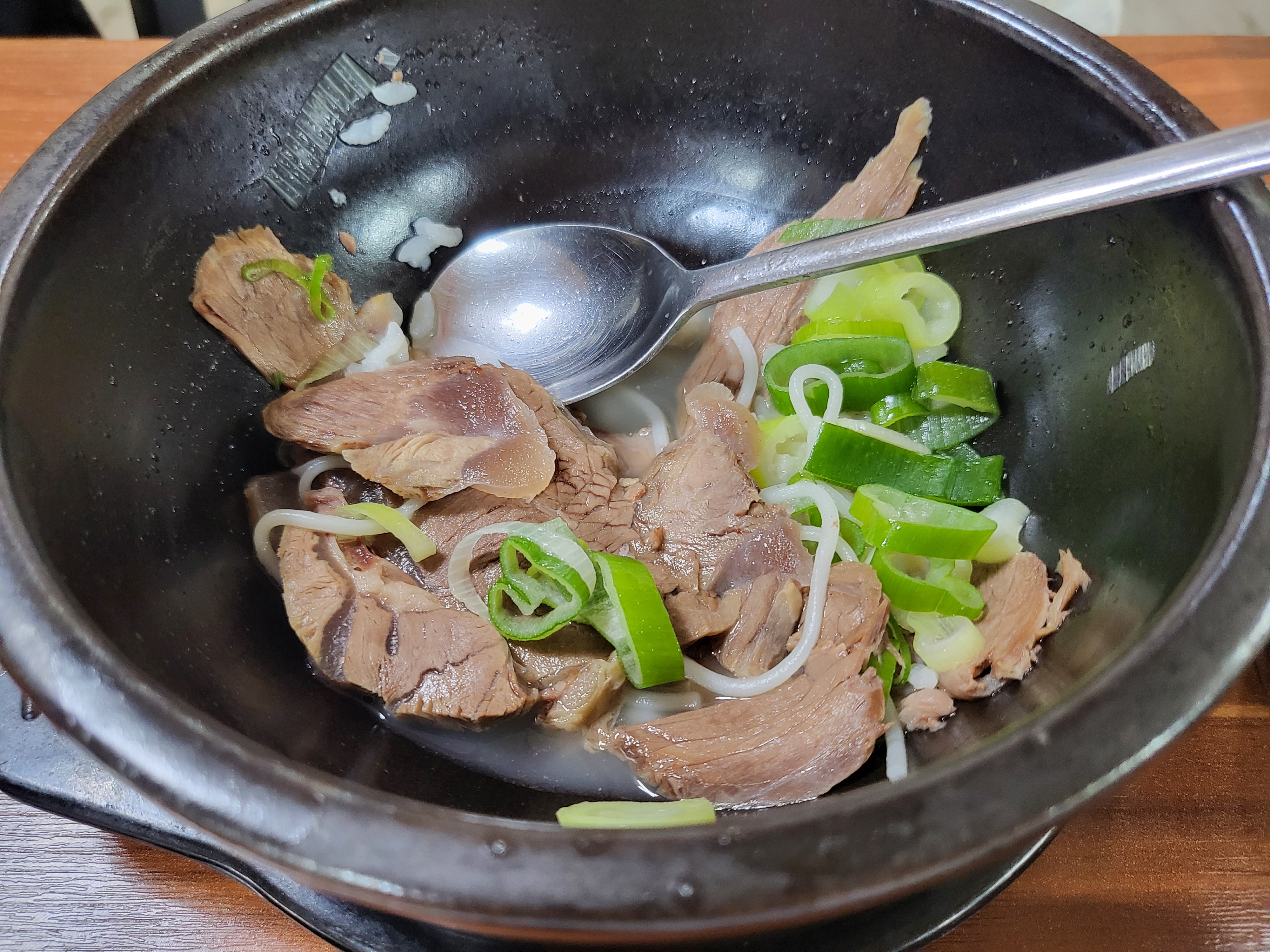 친구가 시킨 설렁탕도 고기가 질기고 냄새나서 다 남겼어요. 주인아저씨는 정말 친절하시더라고요. 국물이 모잘랐다고 말하니 굉장히 미안해 하시며 다음엔 언제든지 말을 하면 얼마든지 더 주신다고 하셨어요.