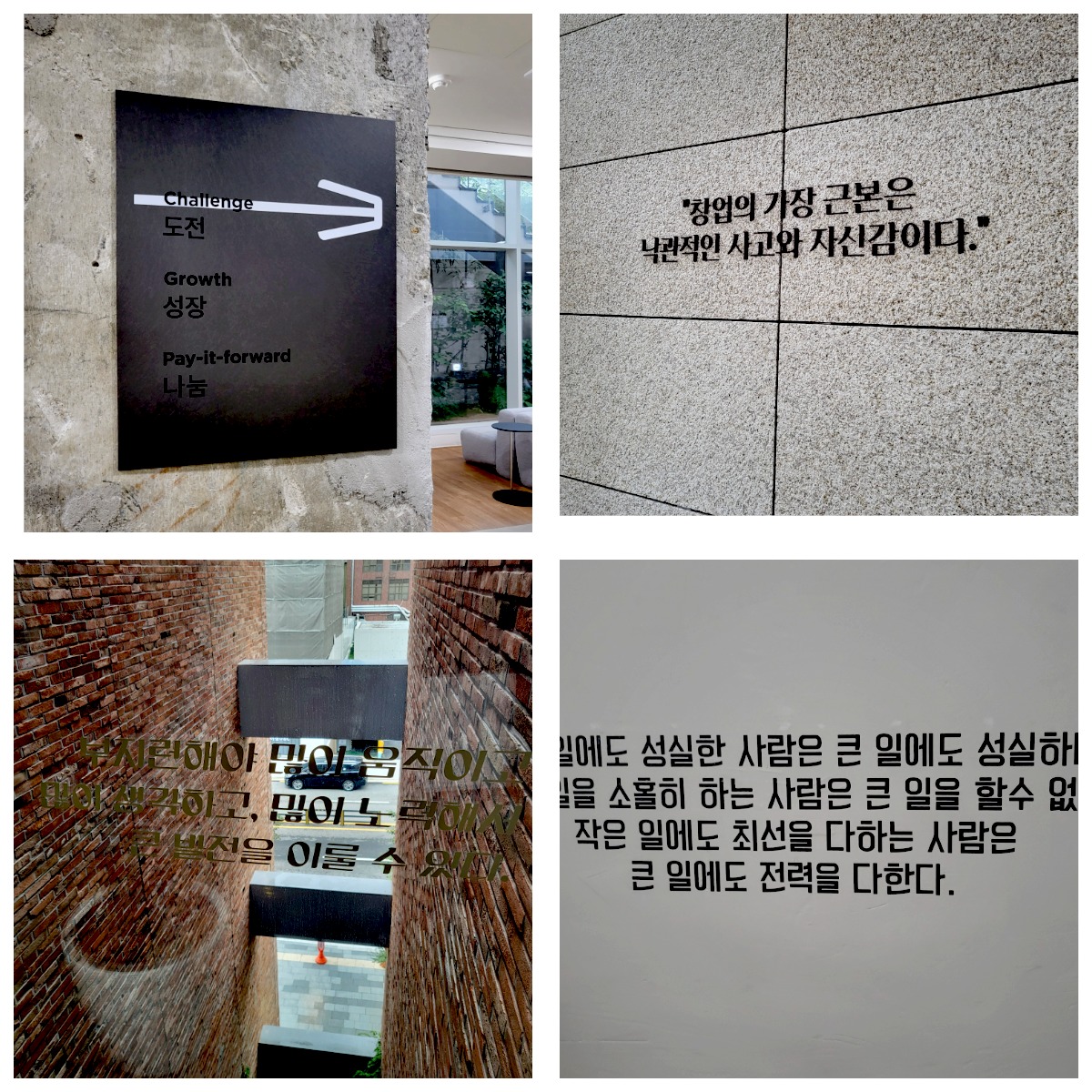 곳곳에 좋은 문구들도 적혀있어서 인테리어 효과도 있고 초보 창업자들이 나태해지지 않도록 계속 동기부여를 해주는것 같아요. 굿!