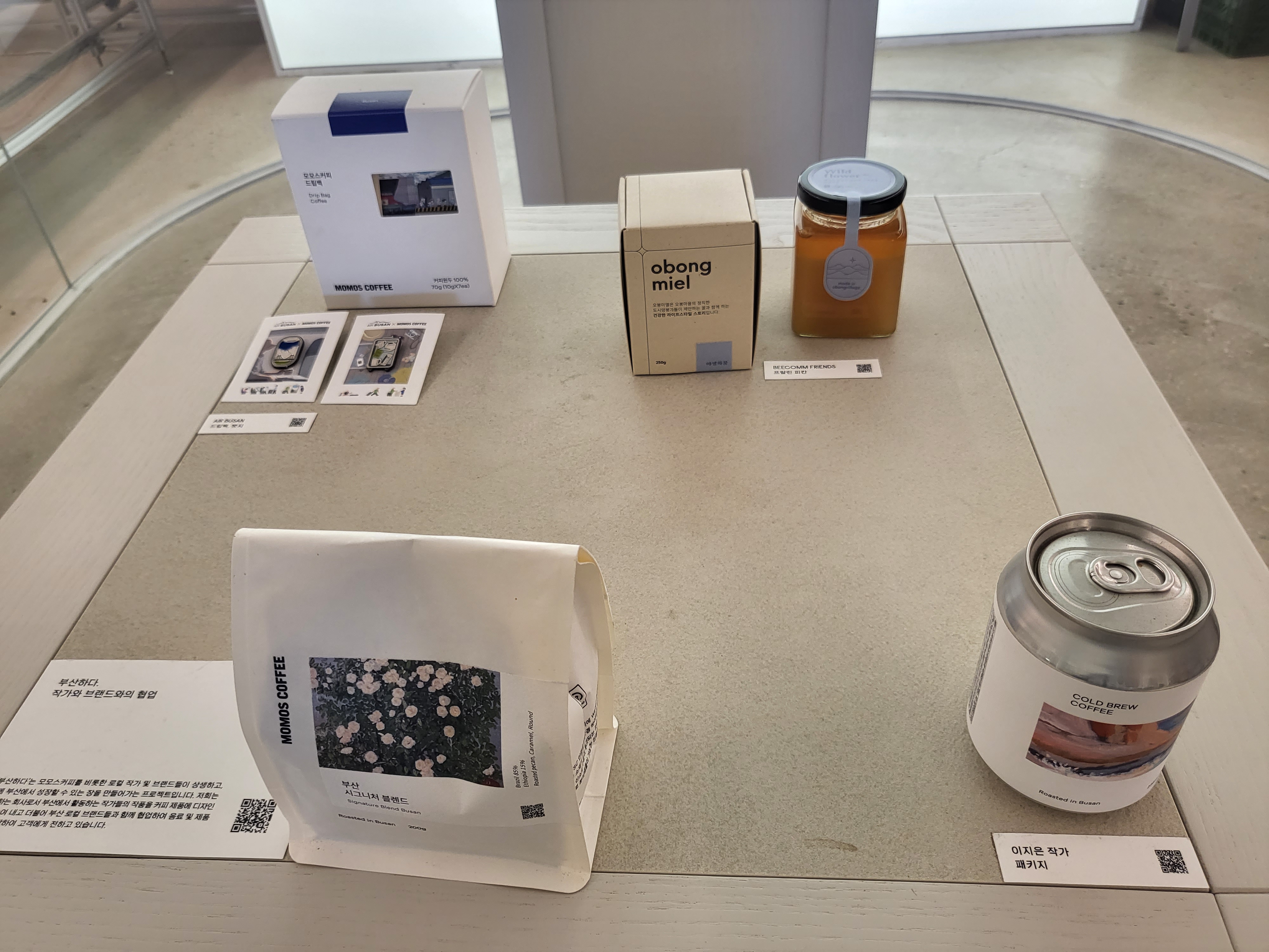 제가 방문했을때는 로스터리 안 유리벽에 그려져 있는 QR 코드를 다 모아오면 티백 스타일 커피백 하나를 선물로 주는 이벤트를 하더라고요.