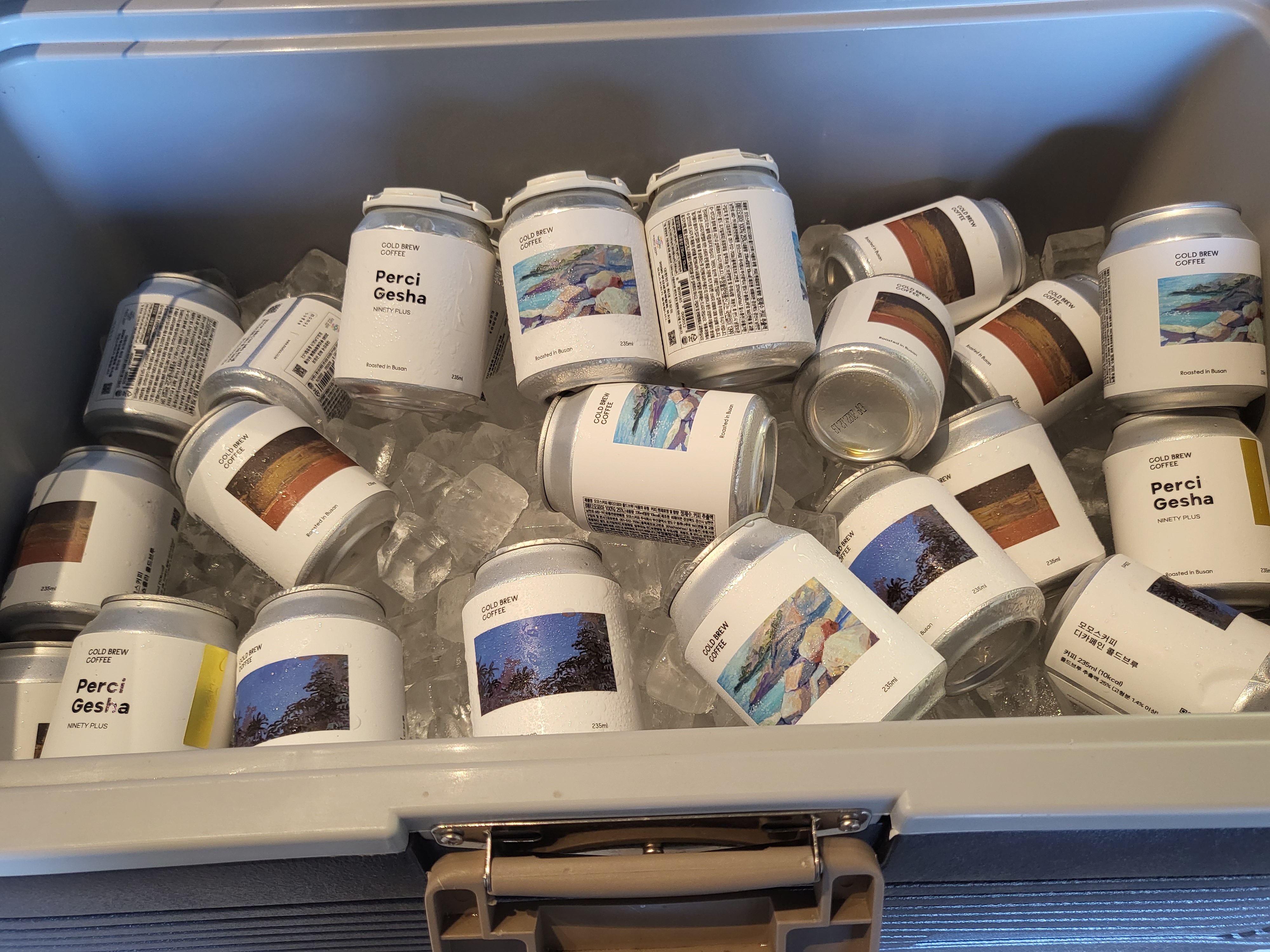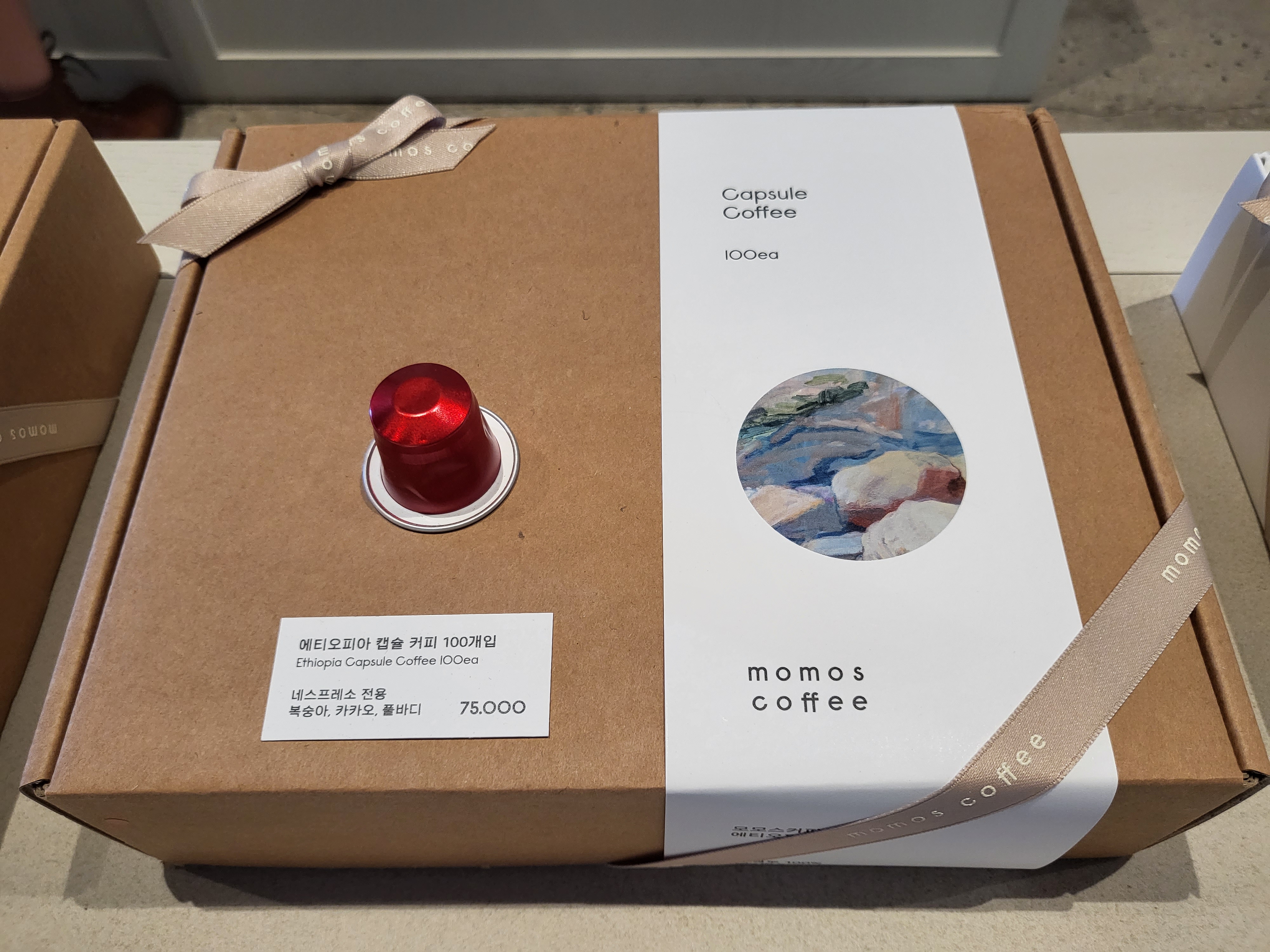 여러 커피종류가 있어요. 네스프레소, 티백 스타일, 원두, 아이스커피캔 등등 커피 툴에 따라 쉽게 내려마실수 있게 상품이 구비되어 있어요.