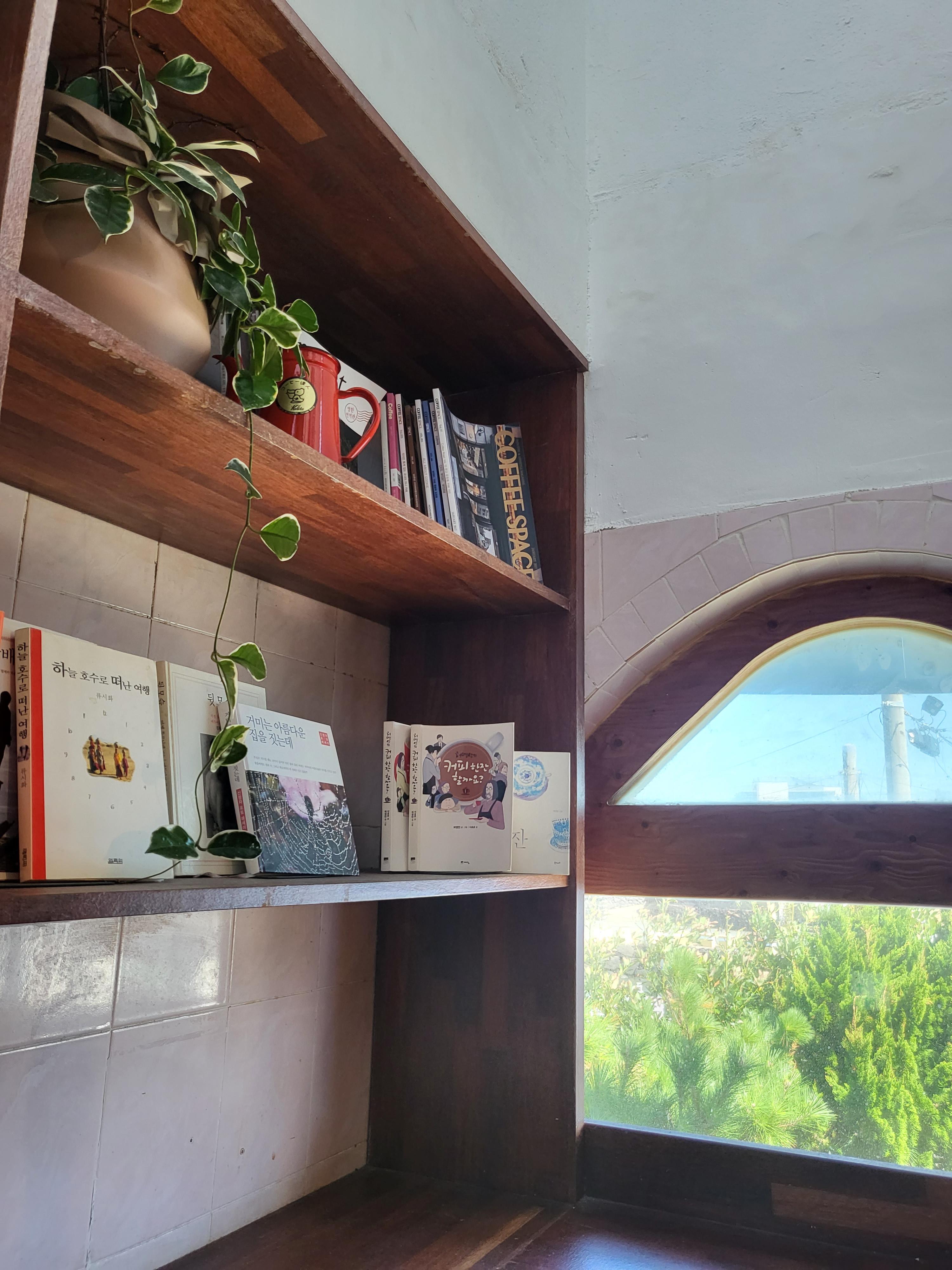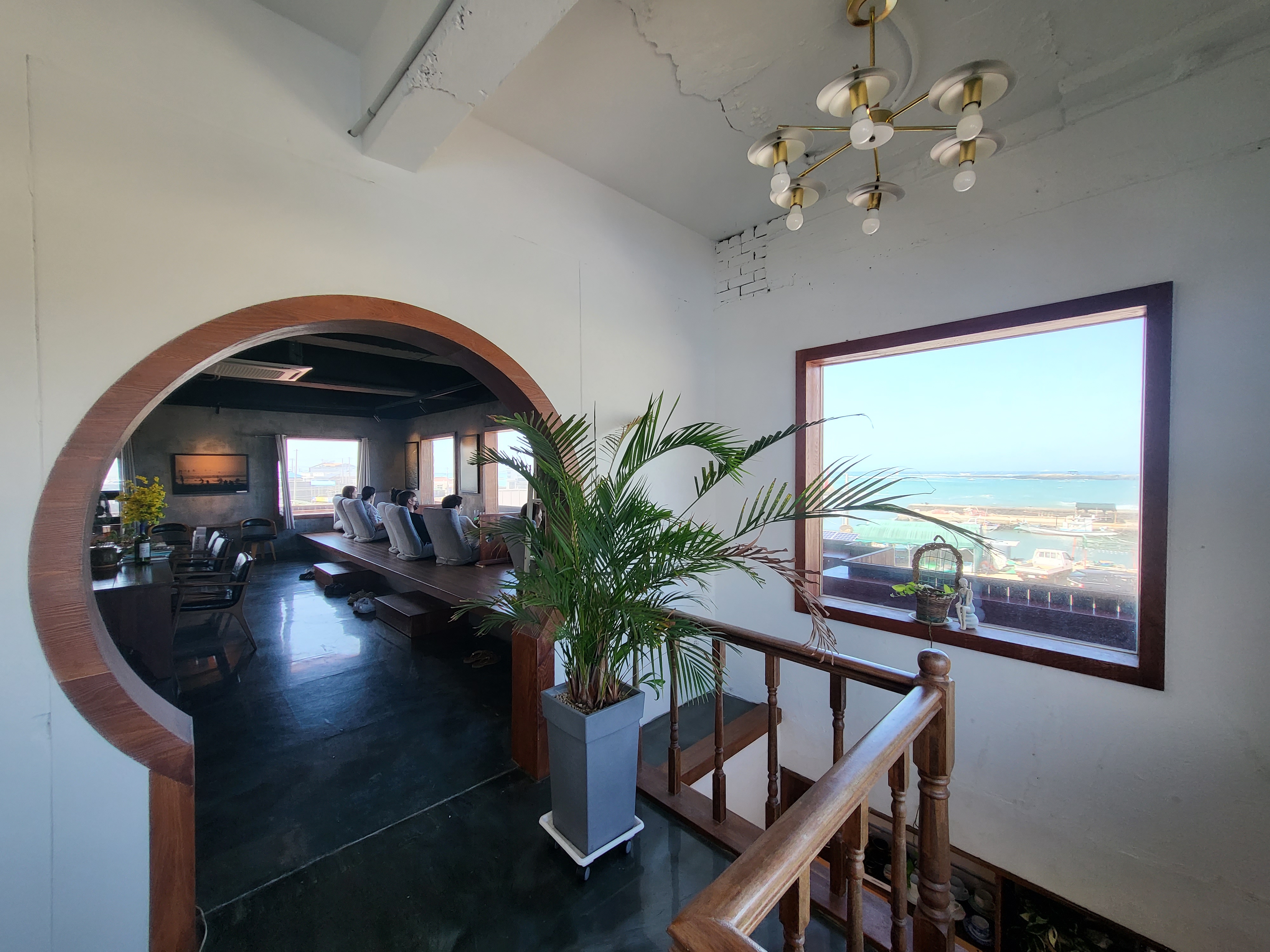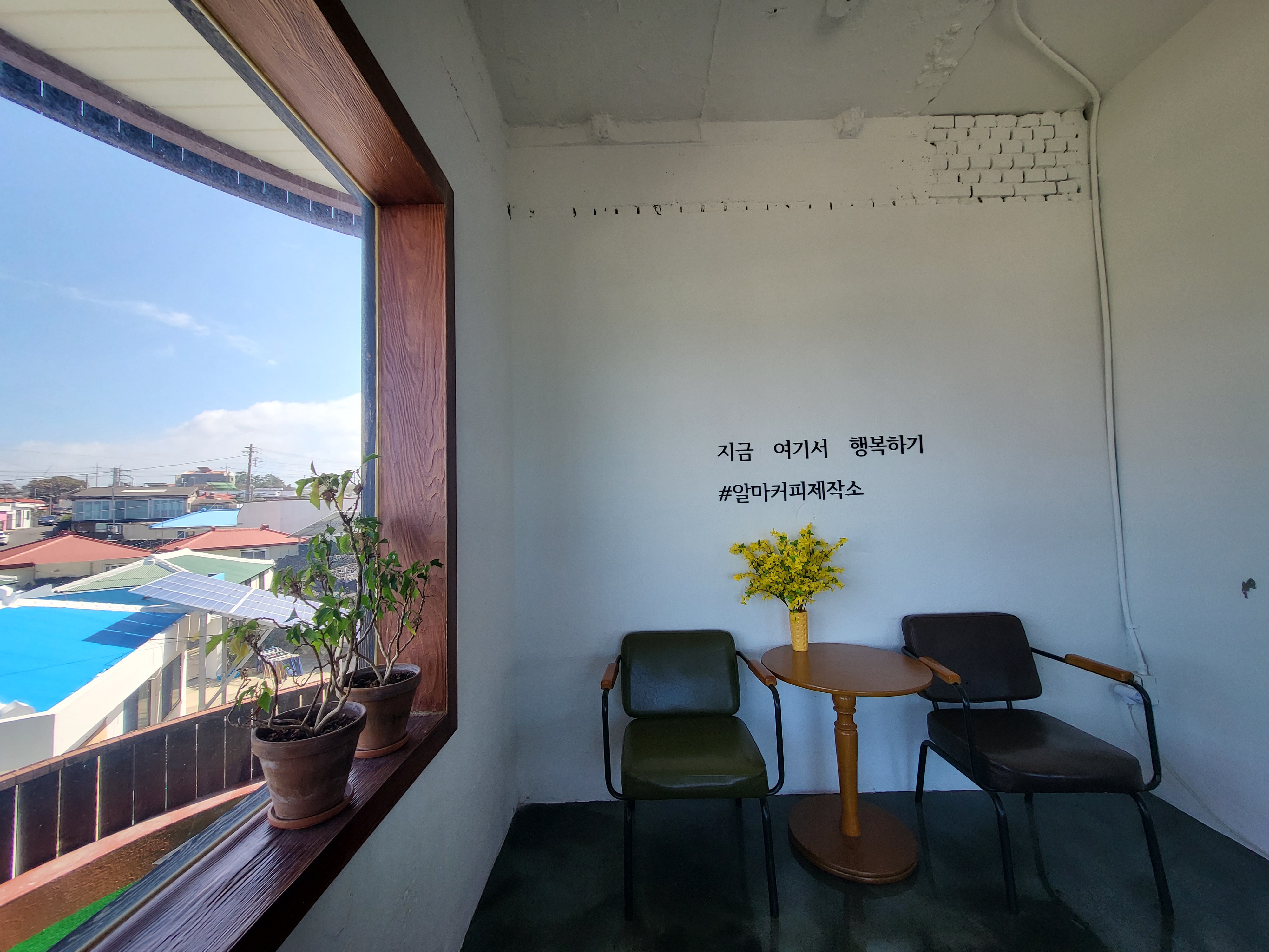 인테리어가 굉장히 감성적이에요. 한국인들이 사랑하는 포토존이 여기저기 있네요. ㅎ 2층 창문가 의자는 모두 바다쪽을 향하고 있어요. 다른 좌석엔 아무도 없고 이 곳만 만석이던데 모두들 조용히 바깥만 바라보고 있는게 뭔가 이상하더라고요. ㅎ 뭐 사실 이 분위기와 어울리긴 해요.