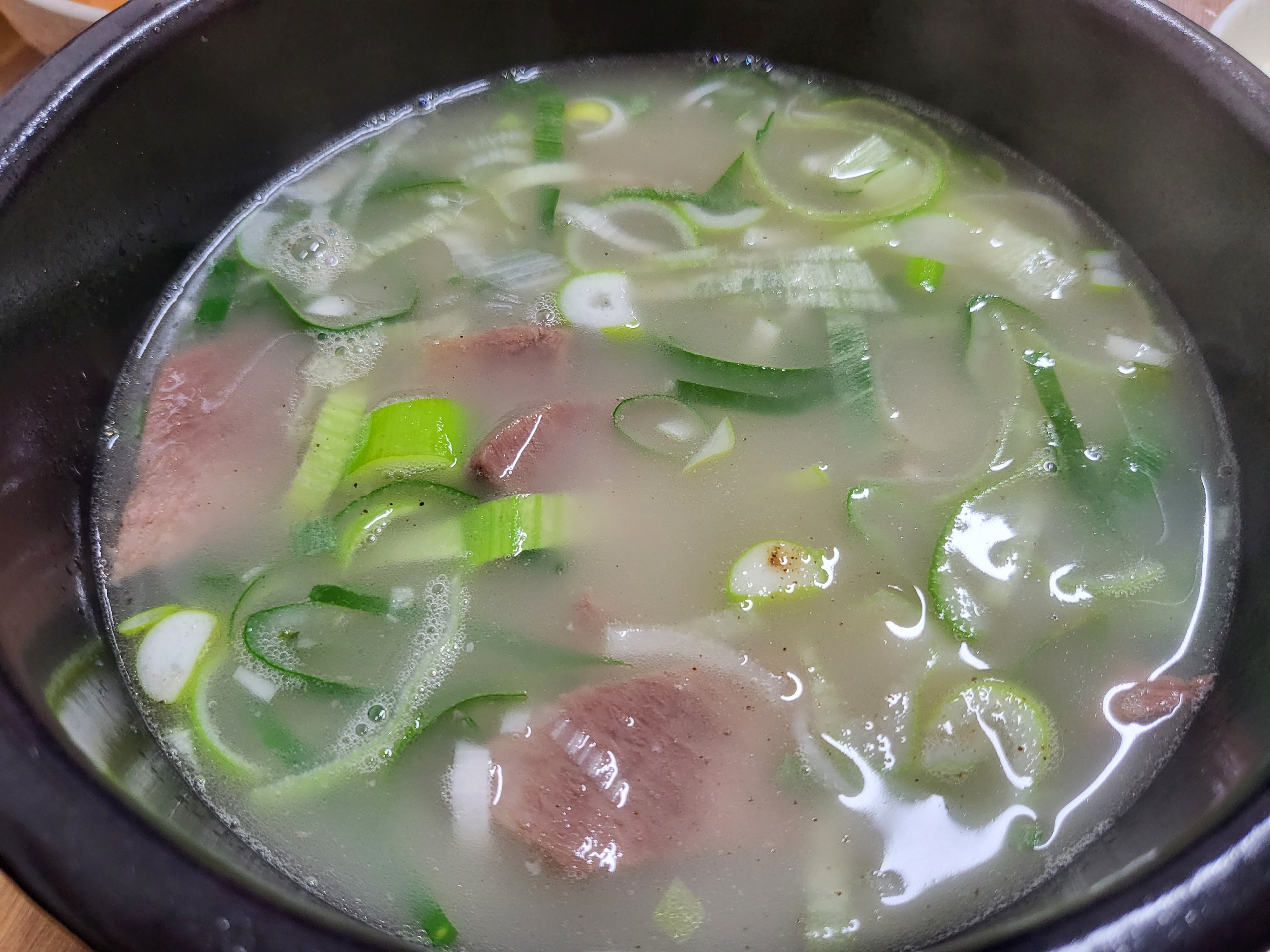 맛은! 정말 최고입니다! 여전히 부산에서 먹은 소머리국밥 만큼의 센세이션은 아니지만 정말 손에 꼽을만한 맛이에요. 같이간 아버지도 계속 감탄하시네요. 고기도 야들야들하고 냄새도 안나고 정말 맛있어요. 같이 나오는 김치랑 깍두기도 정말 예술입니다. 다른 테이블에서도 김치 맛있다는 말이 계속 들리는데 저도 공감합니다!