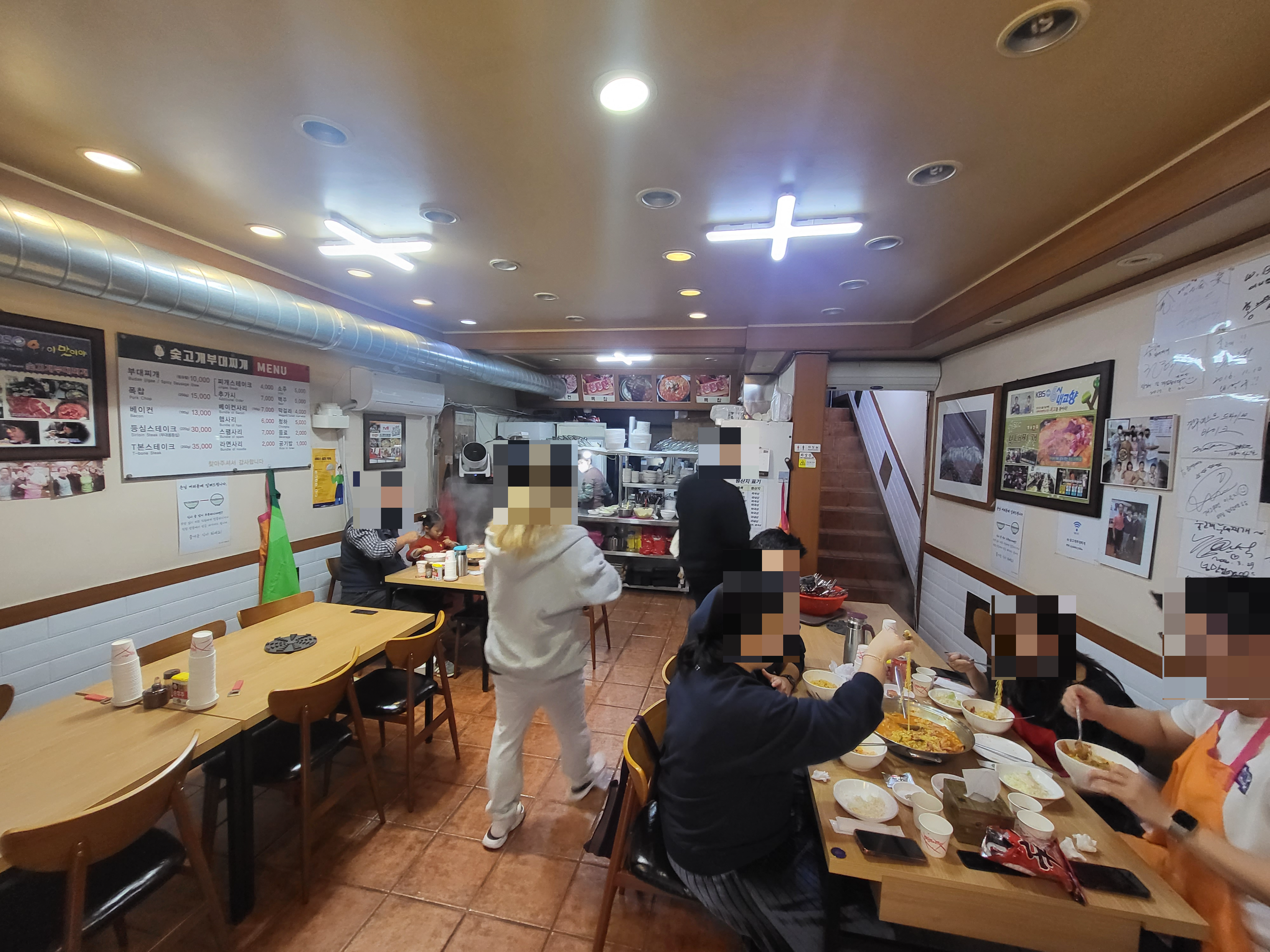 좌석이 그렇게 많지는 않아요. 평일 낮인데도 사람들이 제법 많아요. 가족단위나 친구들 그룹이 많은데 아무래도 인원이 많으면 여러 사리추가를 할 수 있어서 여러명이 같이 오면 좋을것 같아요. 저는 혼밥... 그래도 1인 부대찌개가 가능해서 다행입니다.