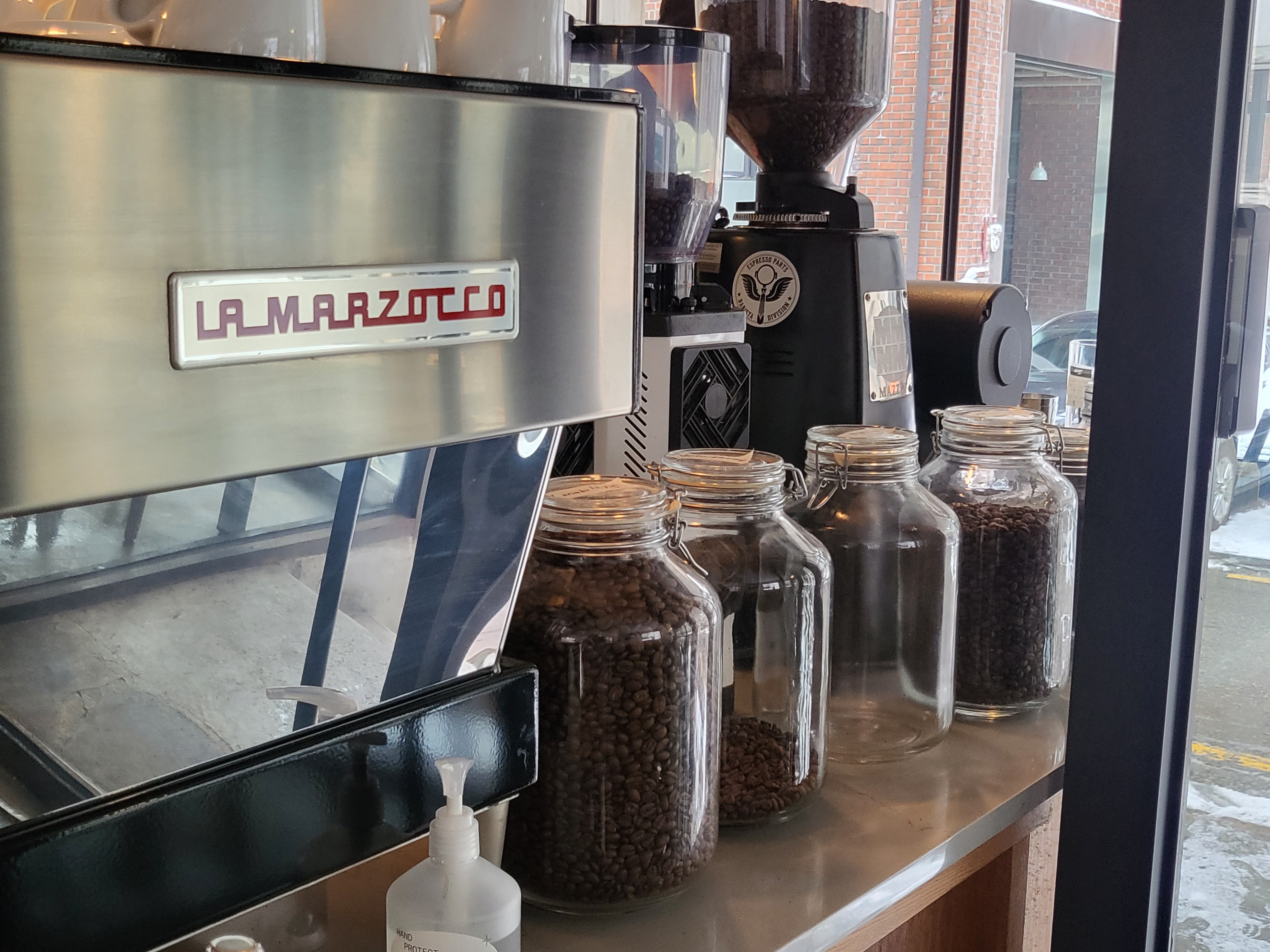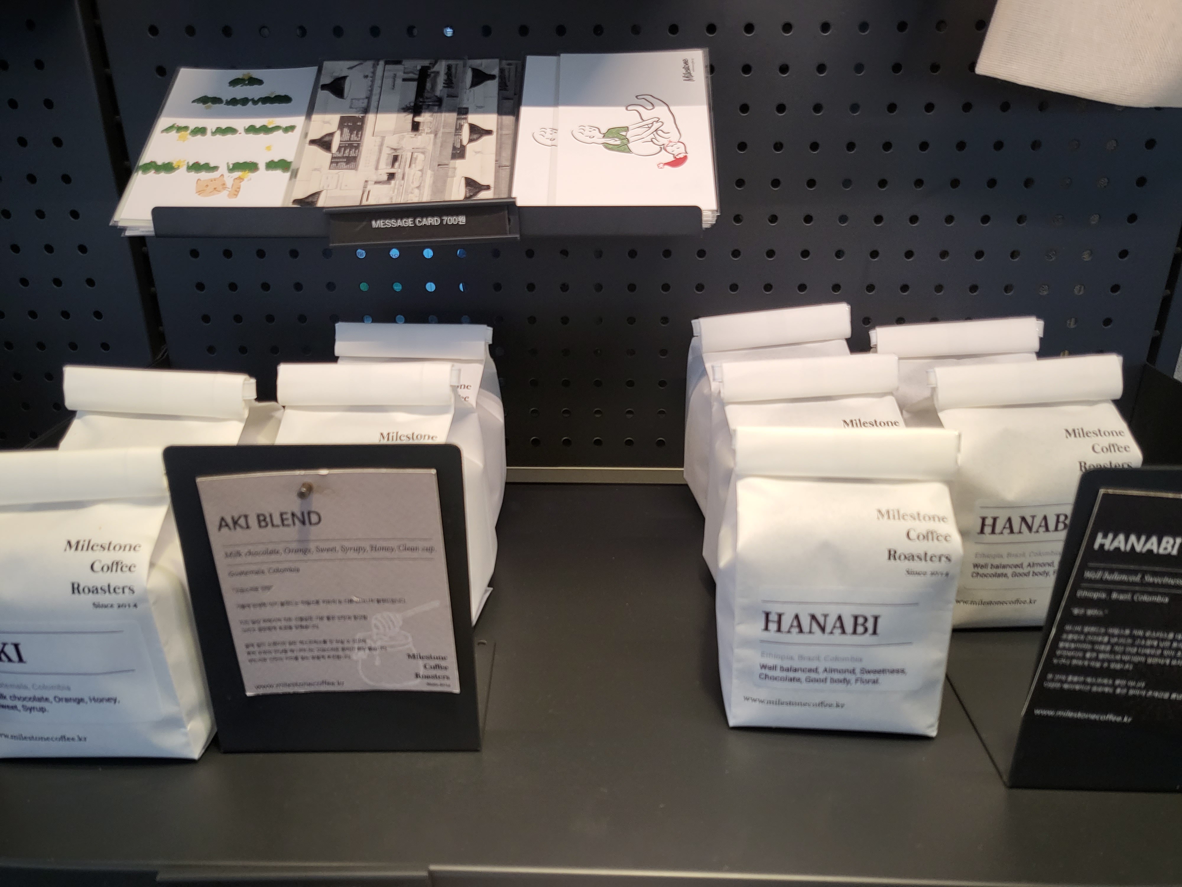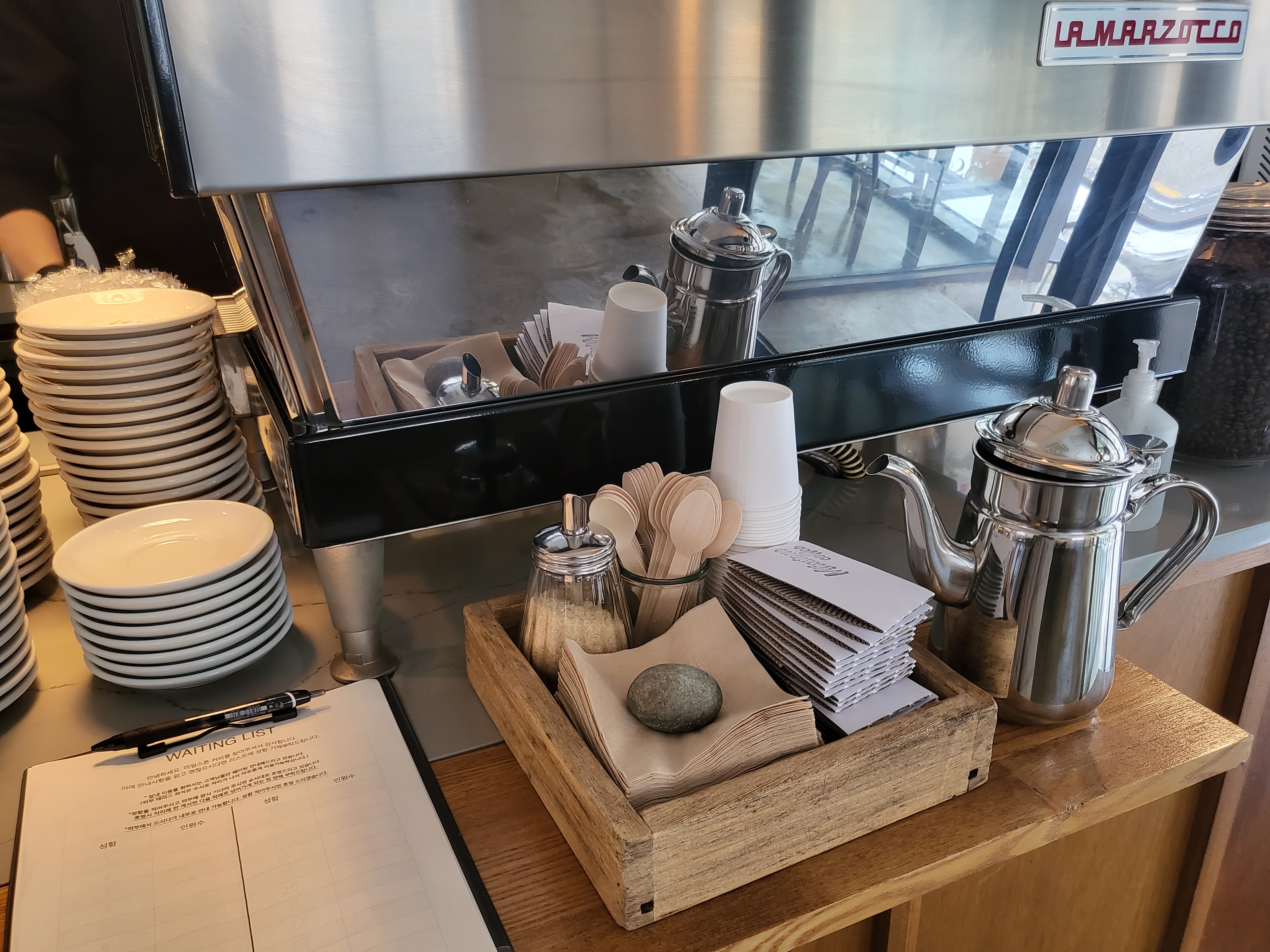 제가 사랑하는 라마르쪼코 커피머신과 메져그라인더네요~ 기대 만빵! 커피숍 한켠에는 이렇게 여러 구디들과 원두도 판매하고 있습니다. 늘 느끼지만 커피숍에서 파는 원두는 넘 비싸요. ㅠ 그만큼 퀄리티와 정성이 깃든 원두겠지만...
