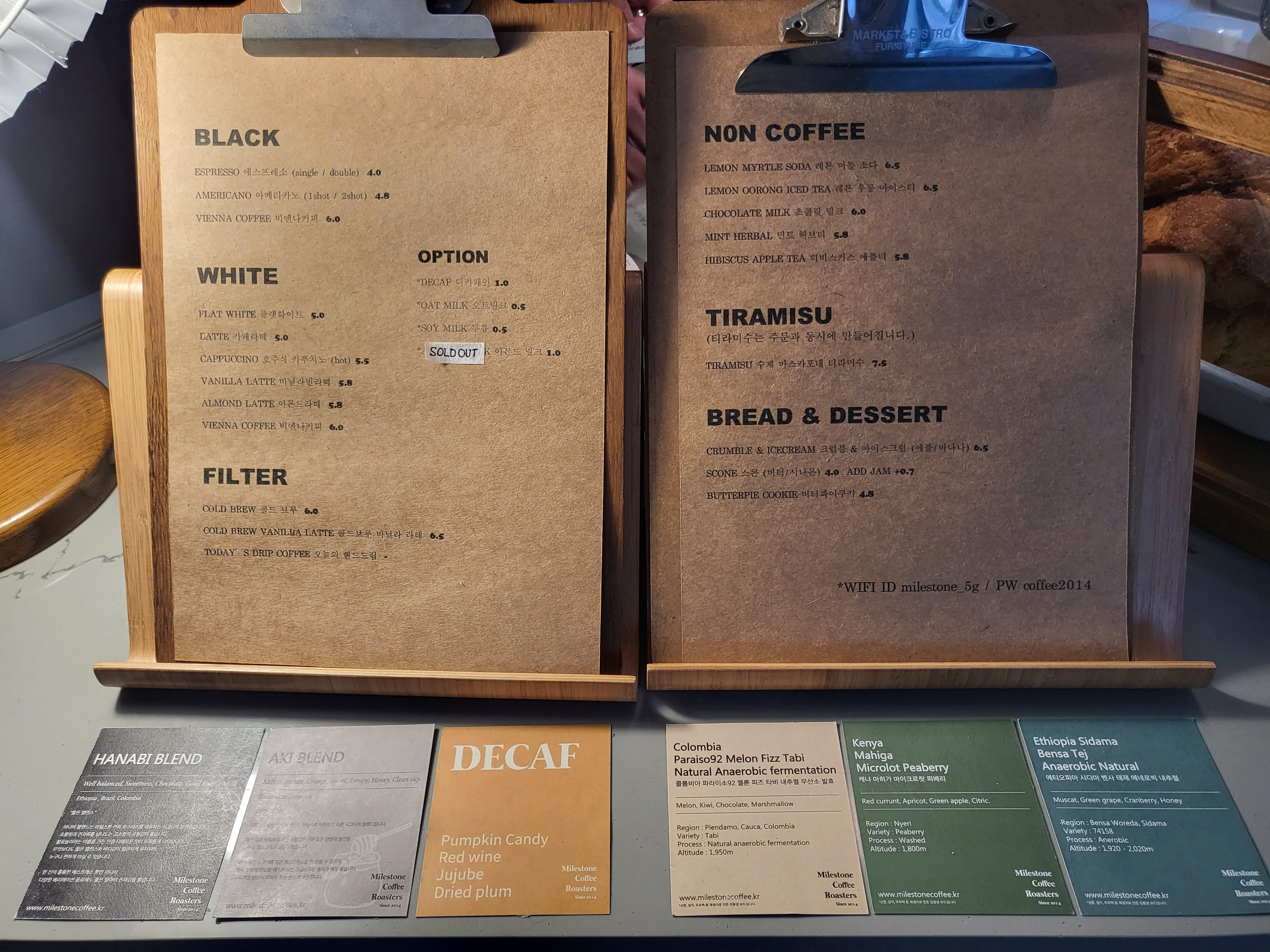 원산지도 여러군데라 고를수 있고 여러 메뉴가 있네요. 전 늘 그렇듯이 플랫화이트를 주문해봅니다.
