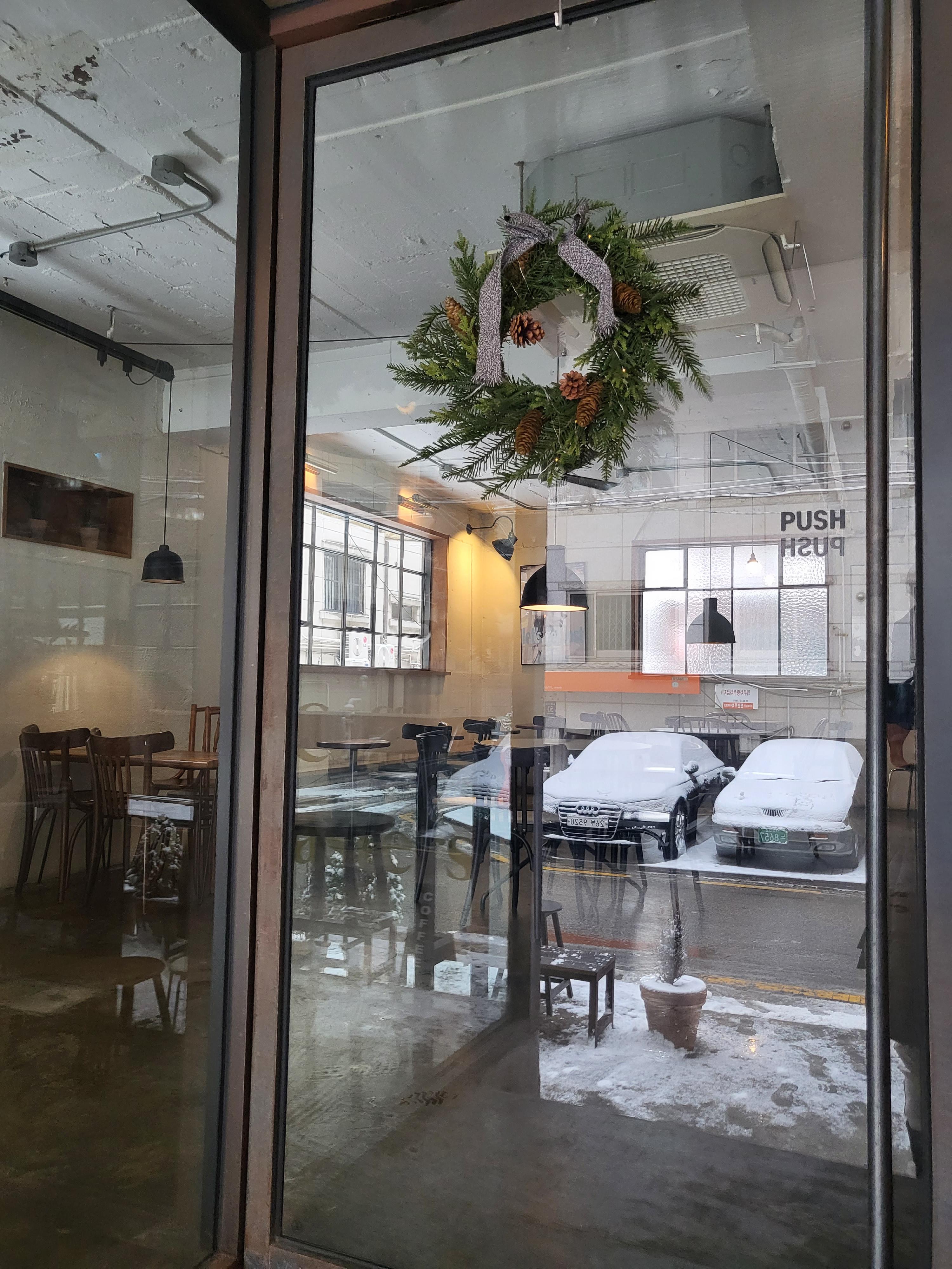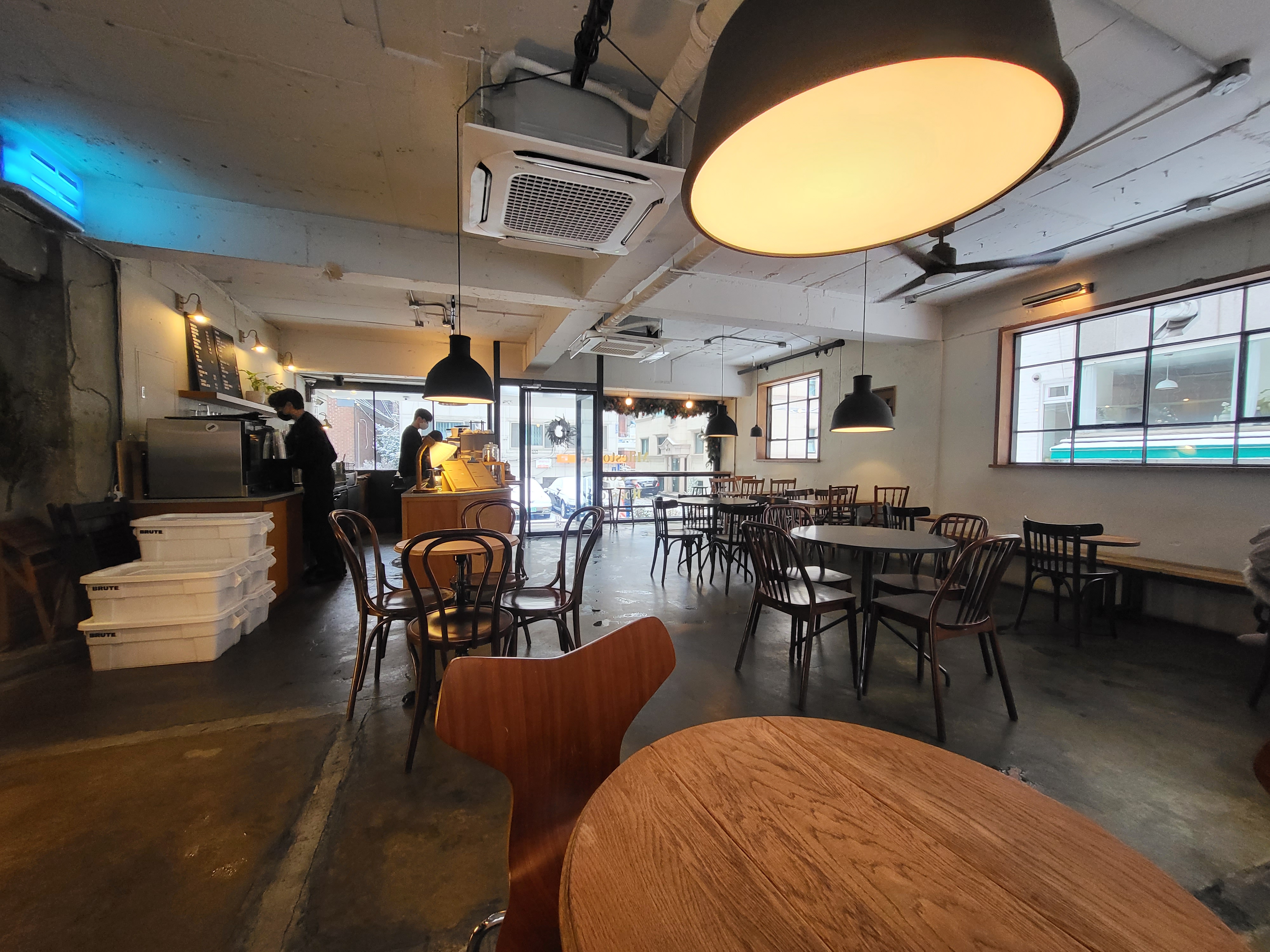 마시면서 주위를 둘러보니 창고형의 인테리어가 참 맘에 드네요. 아침 일찍이라 아직 한 테이블밖에 없습니당. 평소에는 사람이 많다고 하더라고요.