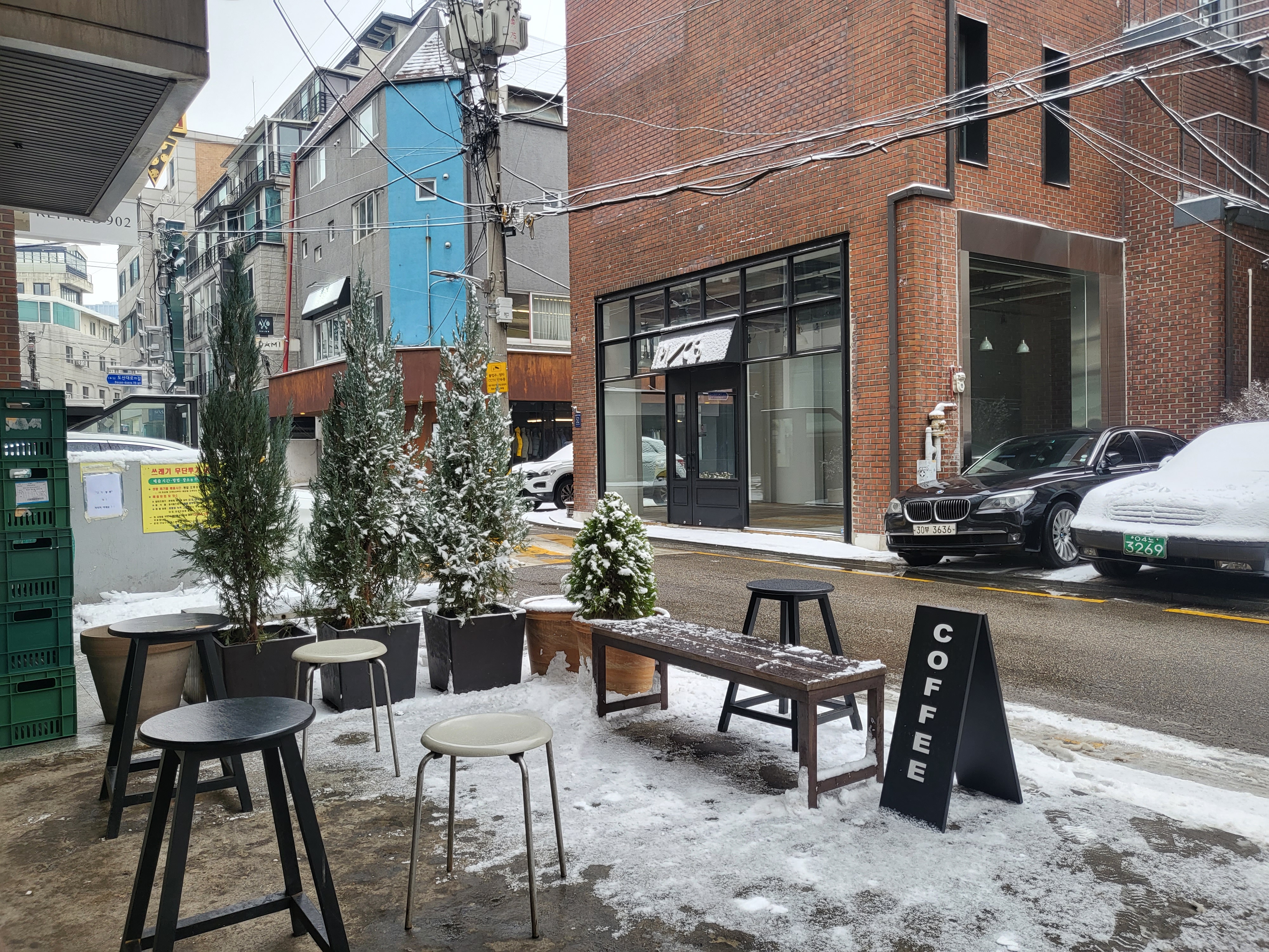 마일스톤 커피 로스터즈 야외공간 너무 맘에 들어요. 별거 없는데도 뭔가 느낌있는 공간~ 추운데도 불구하고 밖에 앉아서 마시는데 기분이 좋네요.