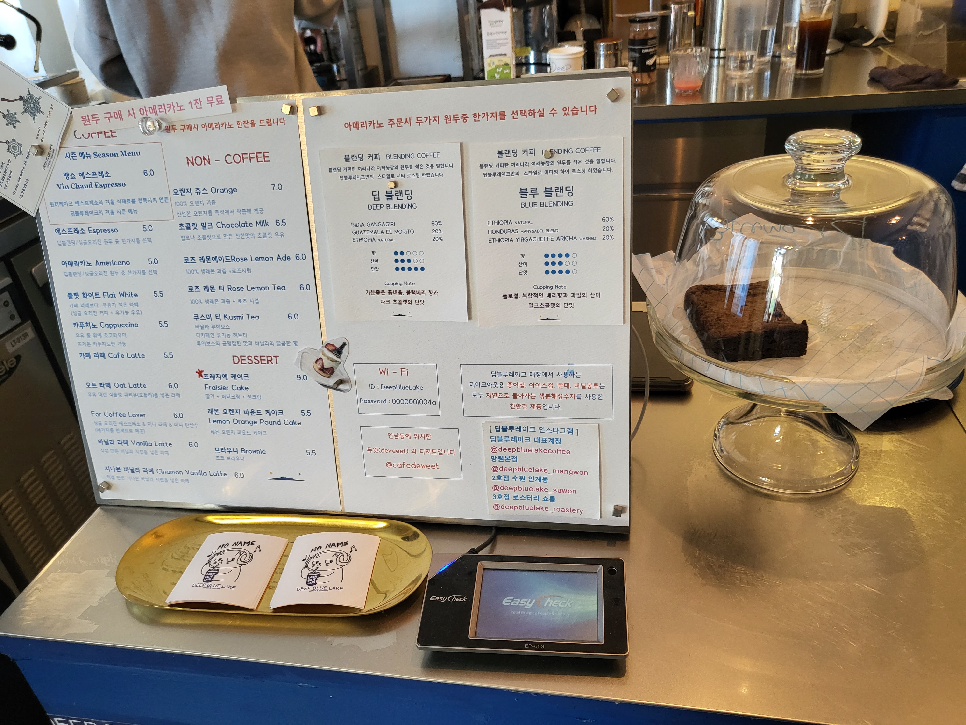 망원동에 있는 딥블루레이크 커피 앤 로스터즈를 소개합니다! 망리단길 주변 검색을 해봐도 베이커리 위주의 카페가 아닌 찐 커피숍은 별로 없더라고요. 직접 로스팅을 하고 커피에 대한 찐 정성이 느껴지는 그런 곳 말이에요. 걸어서 몇군데 입구까지 가서 슬쩍슬쩍 내부도 들여다보다 최종 딥블루레이크 선정!