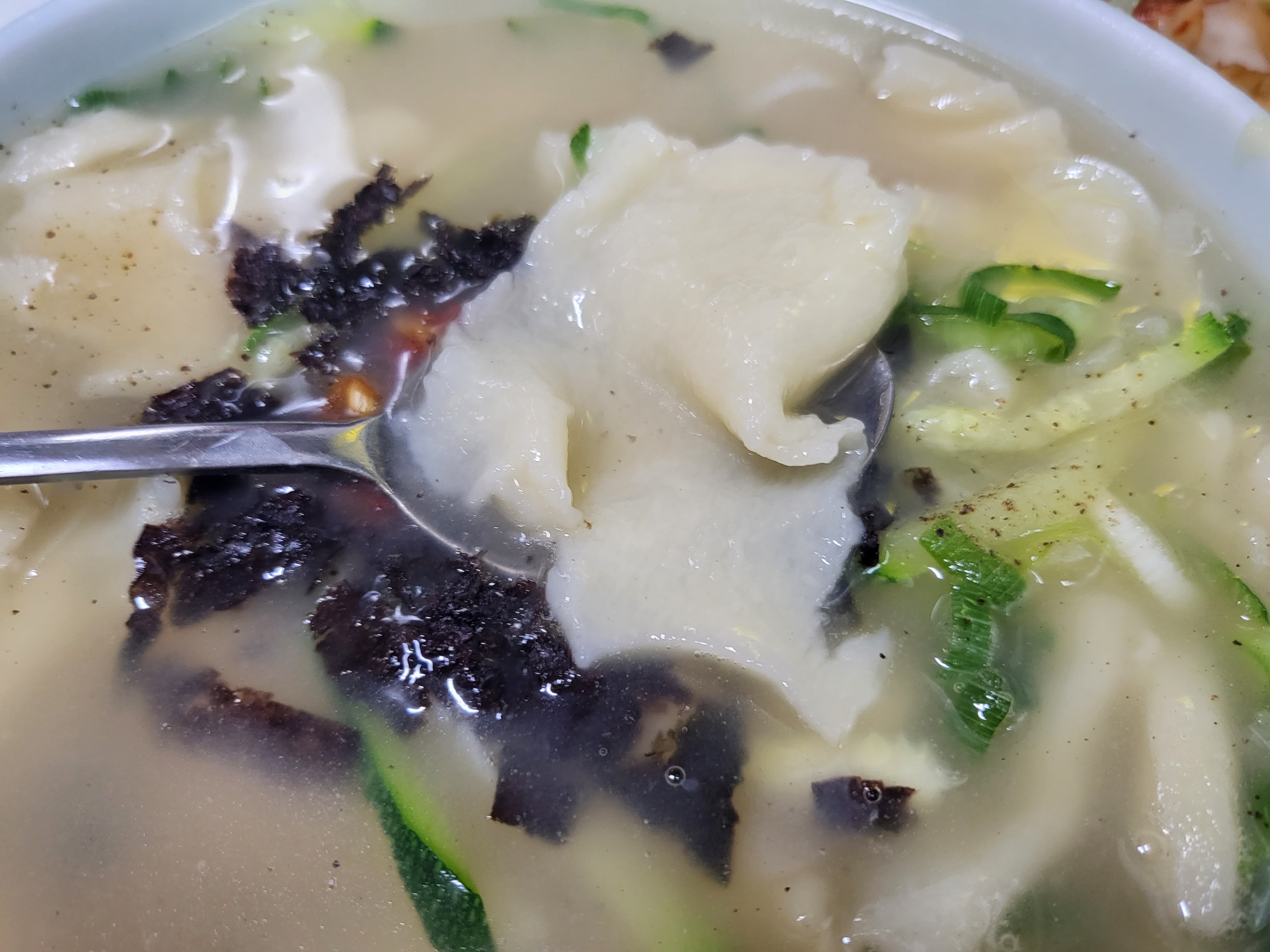 반찬은 갓김치 하나지만 충분하고 수제비는 정말 쫄깃쫄깃하고 맛나네요. 국물도 너무나 찐하고 따끈하고 든든해요.
