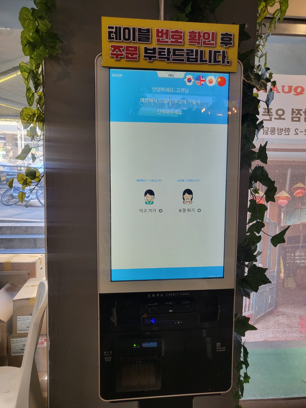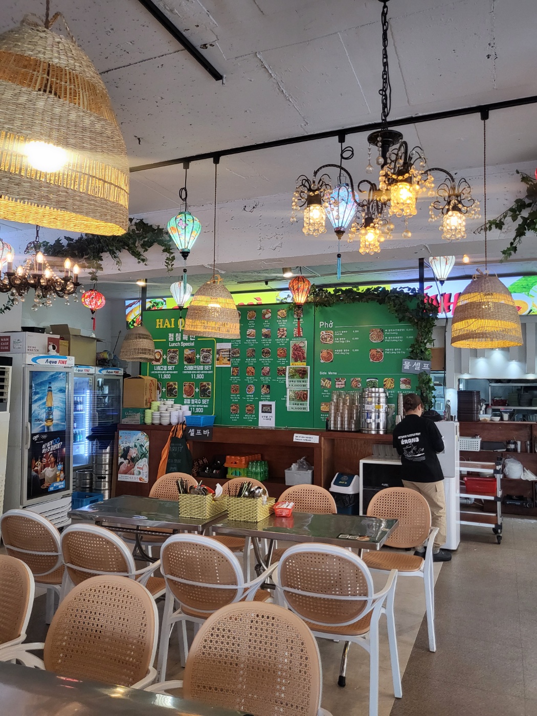 내부는 생각보다는 커요. 테이블마다 숫자가 표기되어 있어서 키오스크에 가서 직접 주문하면 됩니다. 셀프바에는 반찬 몇가지와 베트남 차가 있는데, 베트남 차가 비었더라고요. ㅠ 마시고 싶었는데 아쉽습니다.